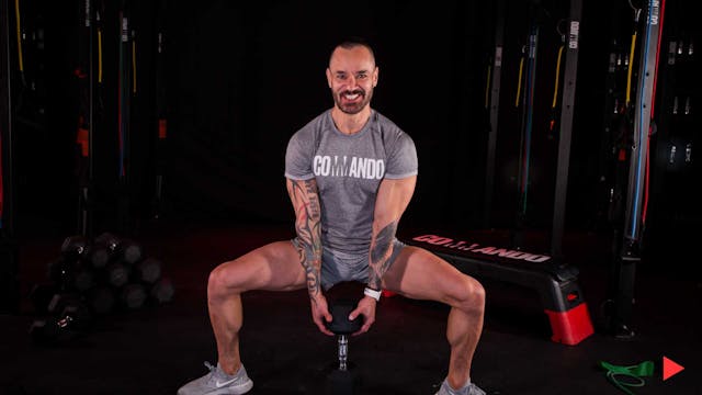 - Equipo para la sesión: Un par de mancuernas medianas o pesadas y un step
